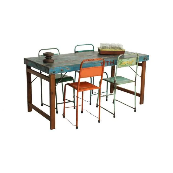 Built from solid reclaimed wood with iron legs, this vintage industrial folding dining table is perfect for both indoor and outdoor use. Its rustic look makes it ideal for market stalls, outdoor cafes, and even home gardens.