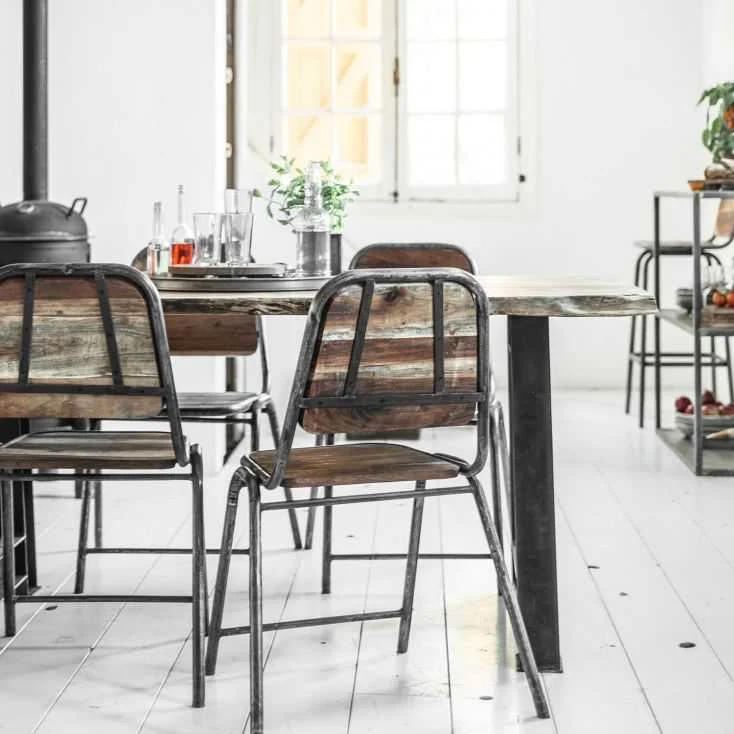With its rustic industrial style, the Factory Dining Chair boasts a bare metal frame and a wooden seat, combining durability and charm. Designed to be stackable for easy storage, it’s perfect for both indoor and outdoor dining settings, making it a versatile choice for any space.